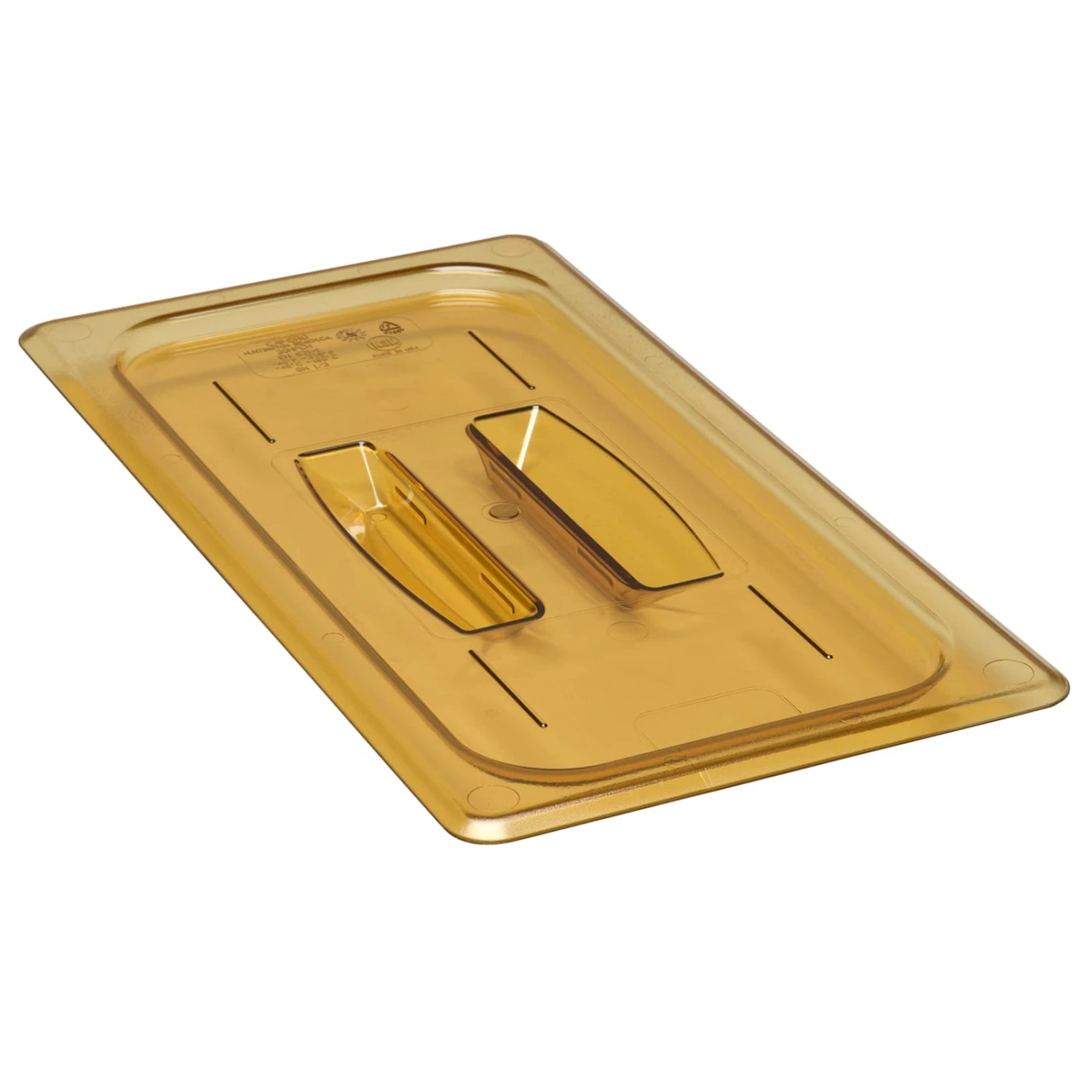 Use this amber, 1/3 size H‐Panâ„¢ cover with handle to keep the contents of your pans secure and prevent cross‐contamination. The high heat material withstands temperatures from ‐40°F all the way up to 375°F, making it perfect for flash freezing, cooking and reheating; you can use it with microwaves, steam tables, chafing dishes and more.