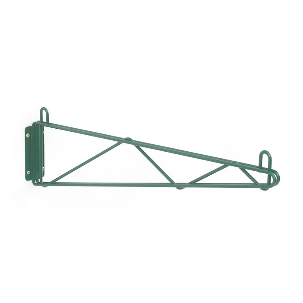 This wall bracket from Olympic Storage features a green epoxy coating and consists of one shelf support and mounting plate.