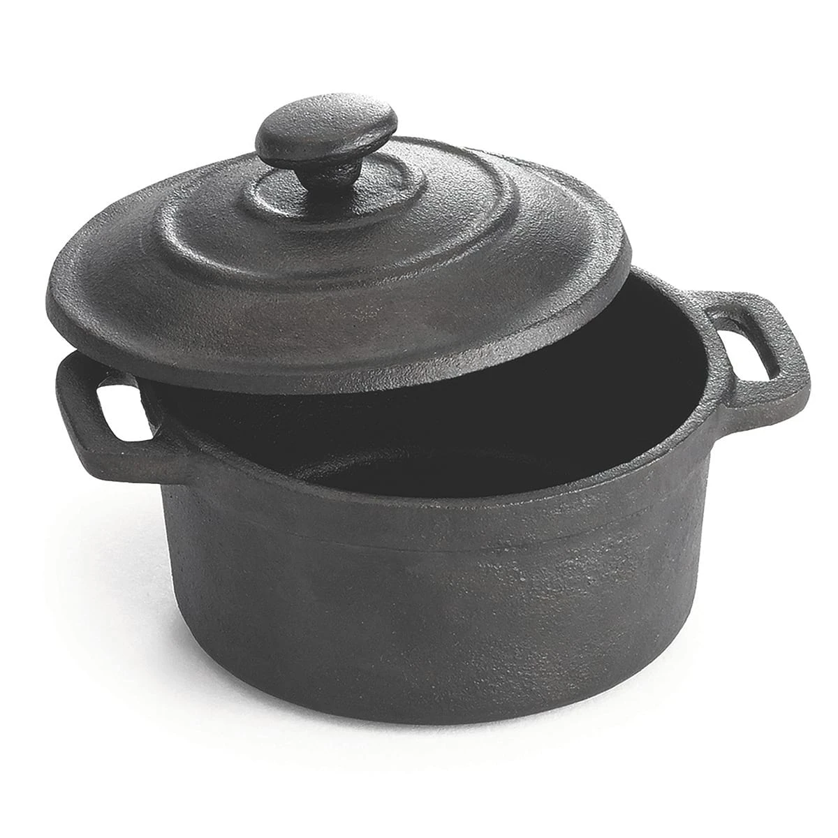This 8 ounce mini casserole from TableCraft features durable cast iron construction and is naturally non‐stick and easy to clean. This 3.63″ round casserole is pre‐seasoned to provide many years of dependable use.