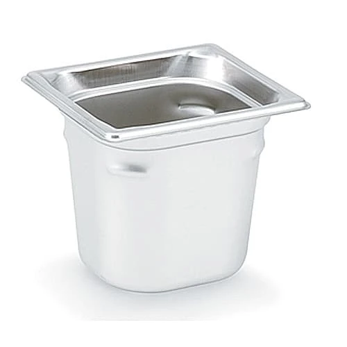This 1/6 size steam table pan is perfect for displays and steam tables thanks to the stylish rims and durable stainless steel construction.