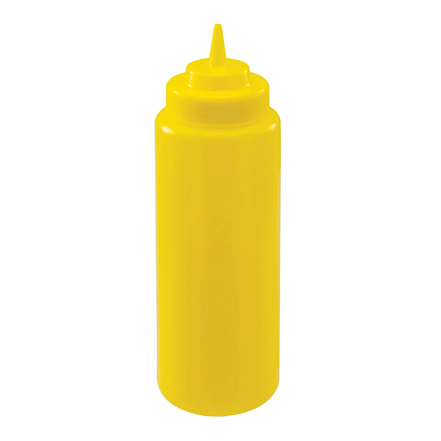 This yellow wide-mouth squeeze bottle from Winco® features an open tip – no need for cutting. It also features a no-leak design and is BPA free.